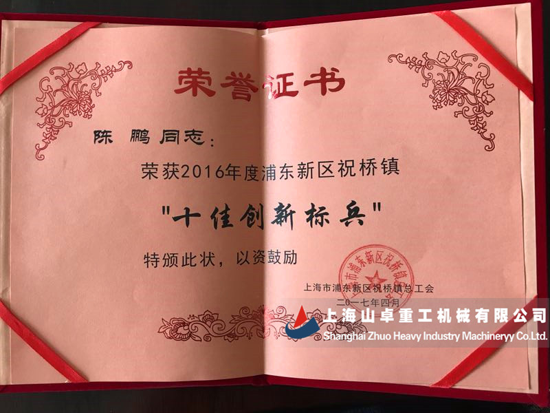 熱烈祝賀上海山卓重工陳鵬獲得2016年度浦東新區(qū)祝橋鎮(zhèn)“十佳創(chuàng)新標(biāo)兵”